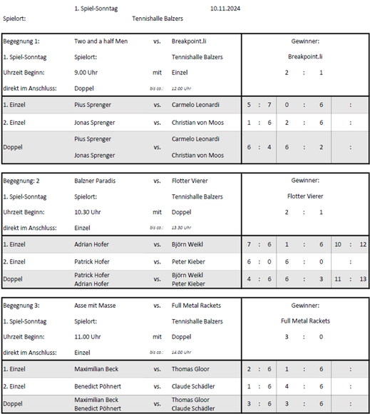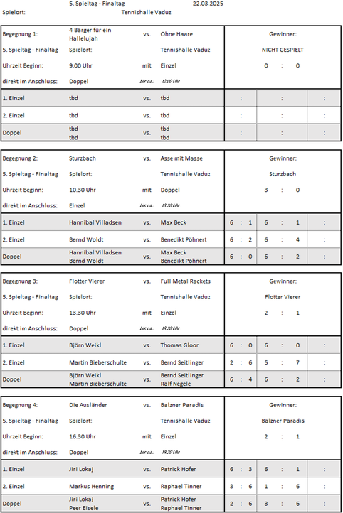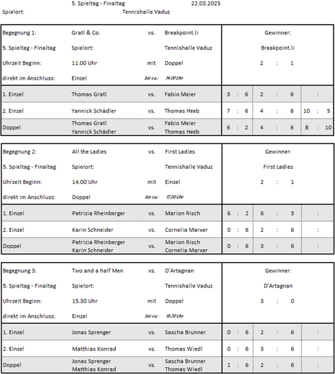 Hier findet ihr alle Termine im Zusammenhang mit Tennis in Liechtenstein und mit Liechtensteiner Beteiligung.